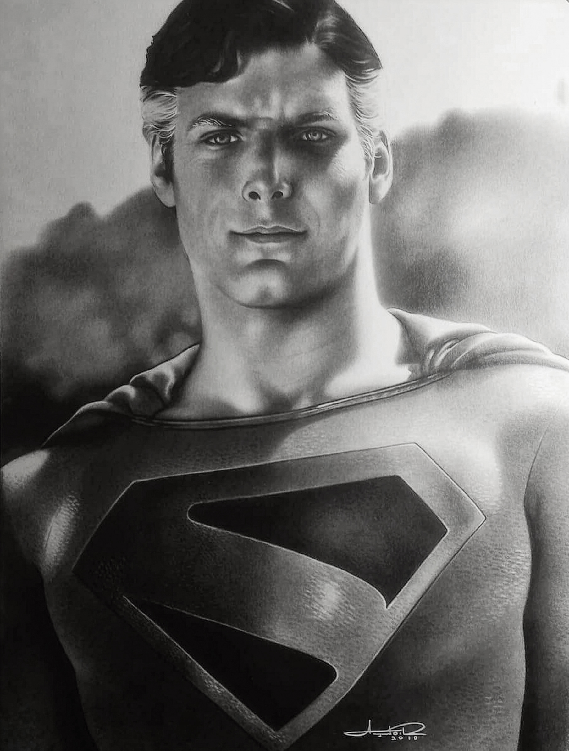 Realistic portrait combining Christopher Reeve's likeness with the character